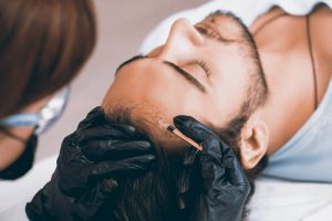 El PRP sigue siendo uno de los tratamientos estrella en 2025. Consiste en la extracción de sangre del propio paciente, la cual se centrifuga para aislar el plasma enriquecido en plaquetas. Esta sustancia, rica en factores de crecimiento, se inyecta en el cuero cabelludo.